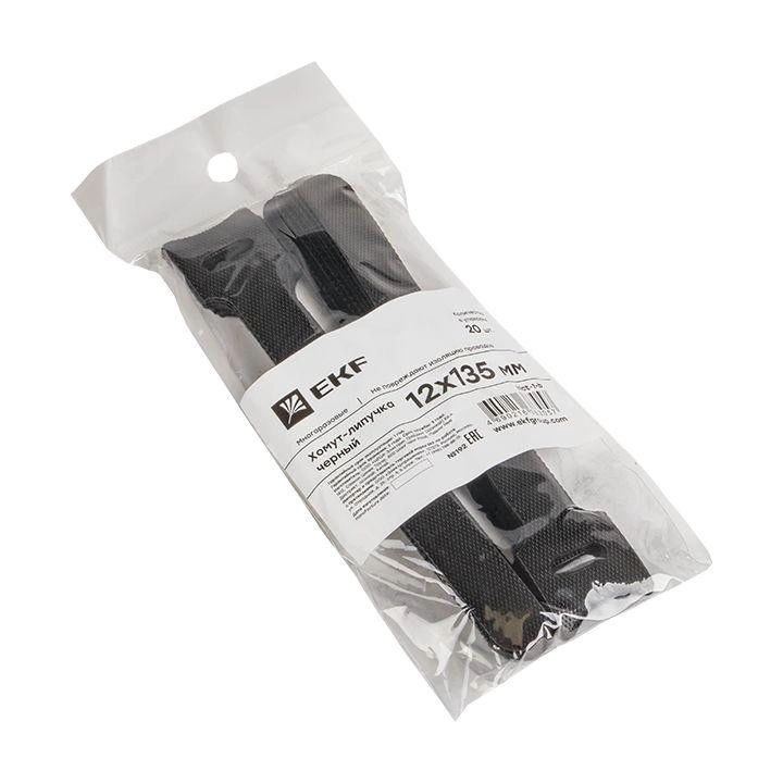 Хомут-липучка 12х135мм черн. (уп.20шт) PROxima EKF hlct-1-b