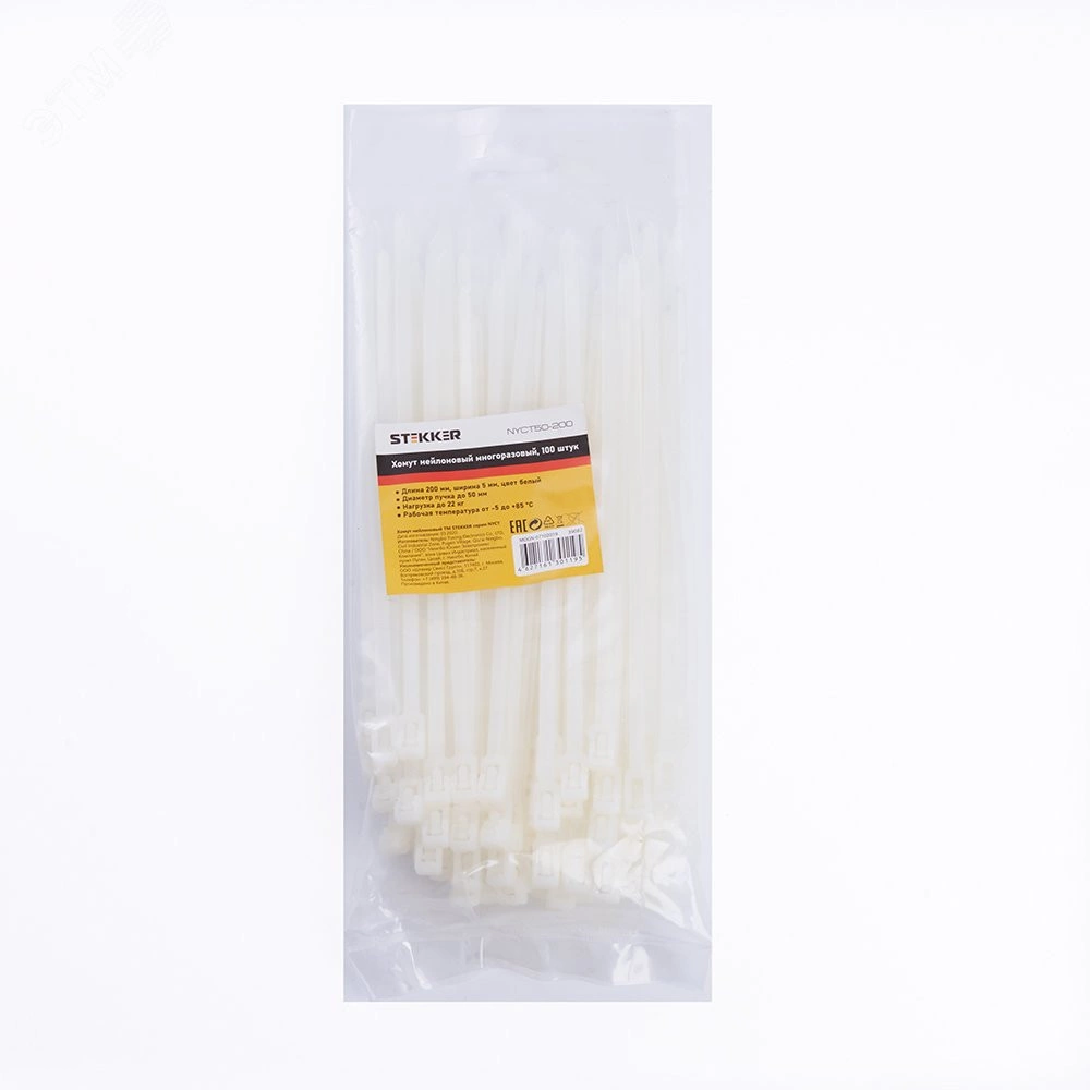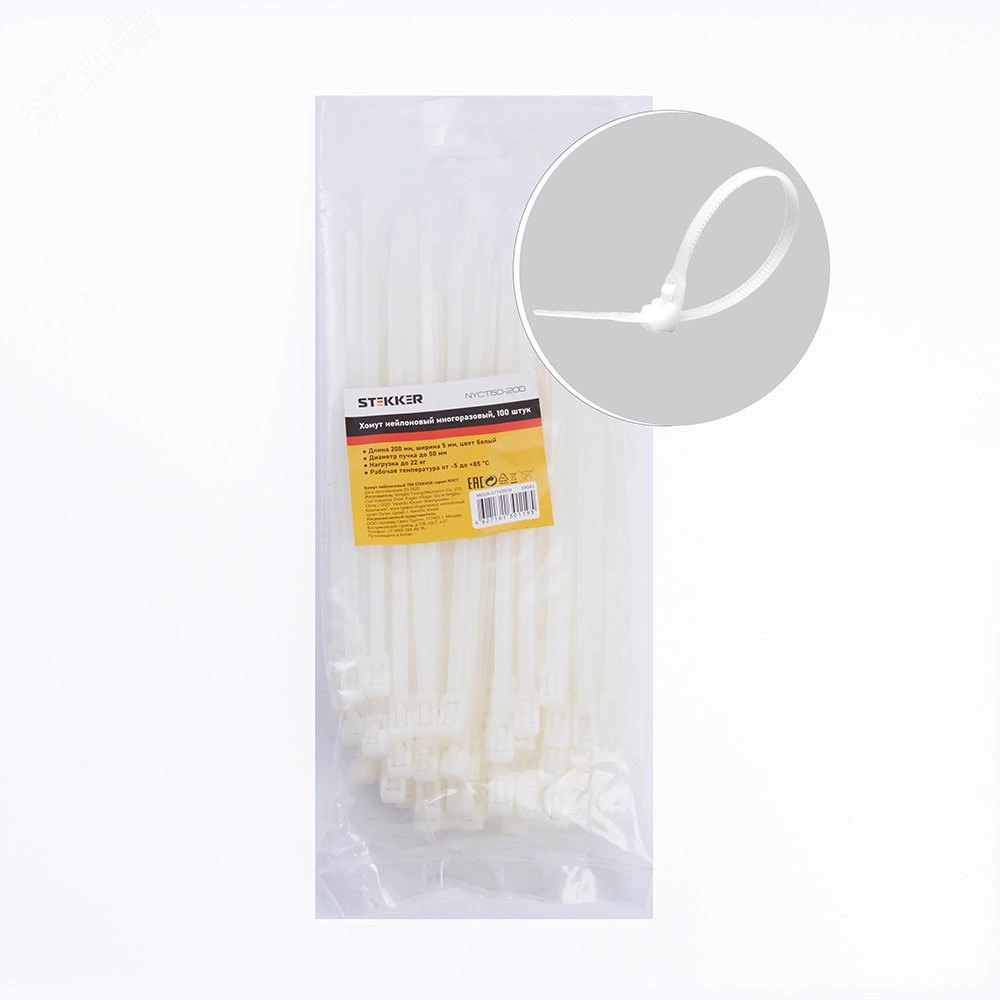 Хомут нейлоновый многоразовый NYCT50-200 предназначен для проведения электромонтажных работ, для крепления кабелей, проводов и других предметов к несущей поверхности или для монтажа между собой. Механизм замка позволяет стянуть провода, прочно зафиксировать и при необходимости без нарушения целостности хомута демонтировать его и использовать повторно.
