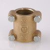 Хомут ремонтный предназначен для устранения локальных протечек в трубопроводах из стальных, полиэтиленовых, полипропиленовых, металлопластиковых труб.Изделие включает в себя две латунные полуобоймы, стягиваемые между собой стальными оцинкованными винтами, а также прокладку из EPDM. При монтаже хомута происходит силовое обжатие и герметизация поврежденного участка трубопровода. Ремонтные хомуты VTr.754 выпускаются под стандарт стальных водогазопроводных труб по ГОСТу 3262 для диаметров условного прохода 1/2'', 3/4'', и 1'' (15, 20, 25 мм), могут применяться при давлении рабочей среды в трубопроводе до 16 бар и температуре до 110 градусов.