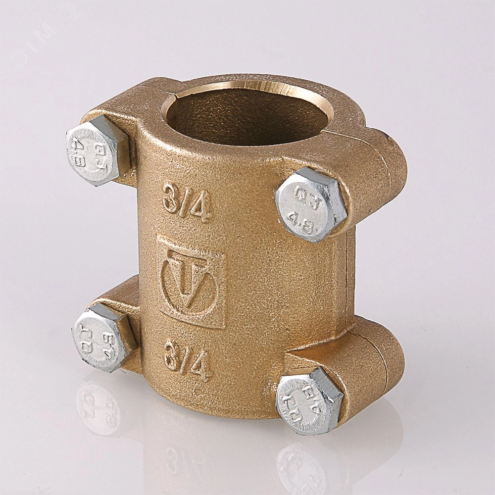 Хомут ремонтный предназначен для устранения локальных протечек в трубопроводах из стальных, полиэтиленовых, полипропиленовых, металлопластиковых труб.Изделие включает в себя две латунные полуобоймы, стягиваемые между собой стальными оцинкованными винтами, а также прокладку из EPDM. При монтаже хомута происходит силовое обжатие и герметизация поврежденного участка трубопровода. Ремонтные хомуты VTr.754 выпускаются под стандарт стальных водогазопроводных труб по ГОСТу 3262 для диаметров условного прохода 1/2'', 3/4'', и 1'' (15, 20, 25 мм), могут применяться при давлении рабочей среды в трубопроводе до 16 бар и температуре до 110 градусов.