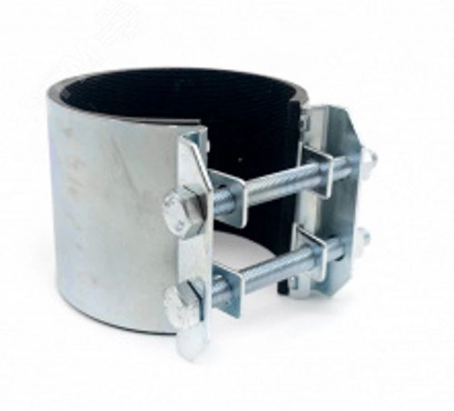 Ремонтные хомуты изготовлены из оцинкованной стали. Толщина корпуса составляет 1 мм, крепежного моста - 2 мм. Хомуты затягиваются болтами и гайками М6 или М8. Крепежные элементы оцинкованы.Уплотнительная прокладка.