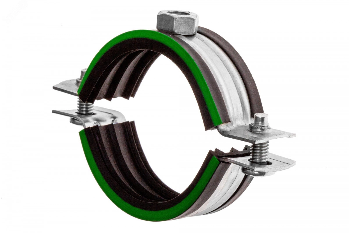 Сантехнический хомут изготовлен из стали высокого качества с гальваническим покрытием 8-10 мкм. Гайка приваривается на двойное ребро жесткости, предварительно гайка обезжиривается перед сваркой. Сантехнический хомут комплектуется резиновым ТЭП-уплотнителем.