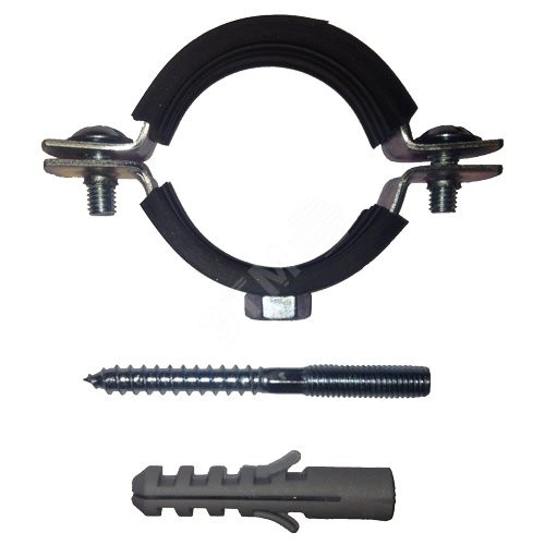 Хомут сантехнический с шпилькой и дюбелем 1'1/4 (39-46 мм) гайка М8 оцинкованная сталь с резиновым уплотнением