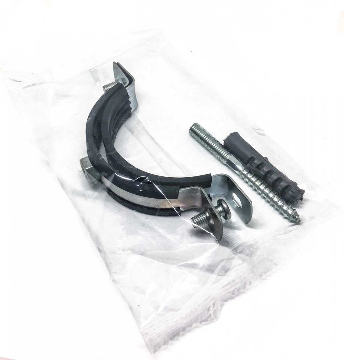 Сантехнические трубные хомуты для крепления водопроводных и канализационных труб по ГОСТ 24140-80 являются чрезвычайно востребованной позицией. Выпускаются хомуты всех трубных размеров. Хомуты снабжены резиновым профилем и приварной гайкой. Стандартные металлические крепежи с резиновым профилем предлагаются с болтом на М8 или М10.