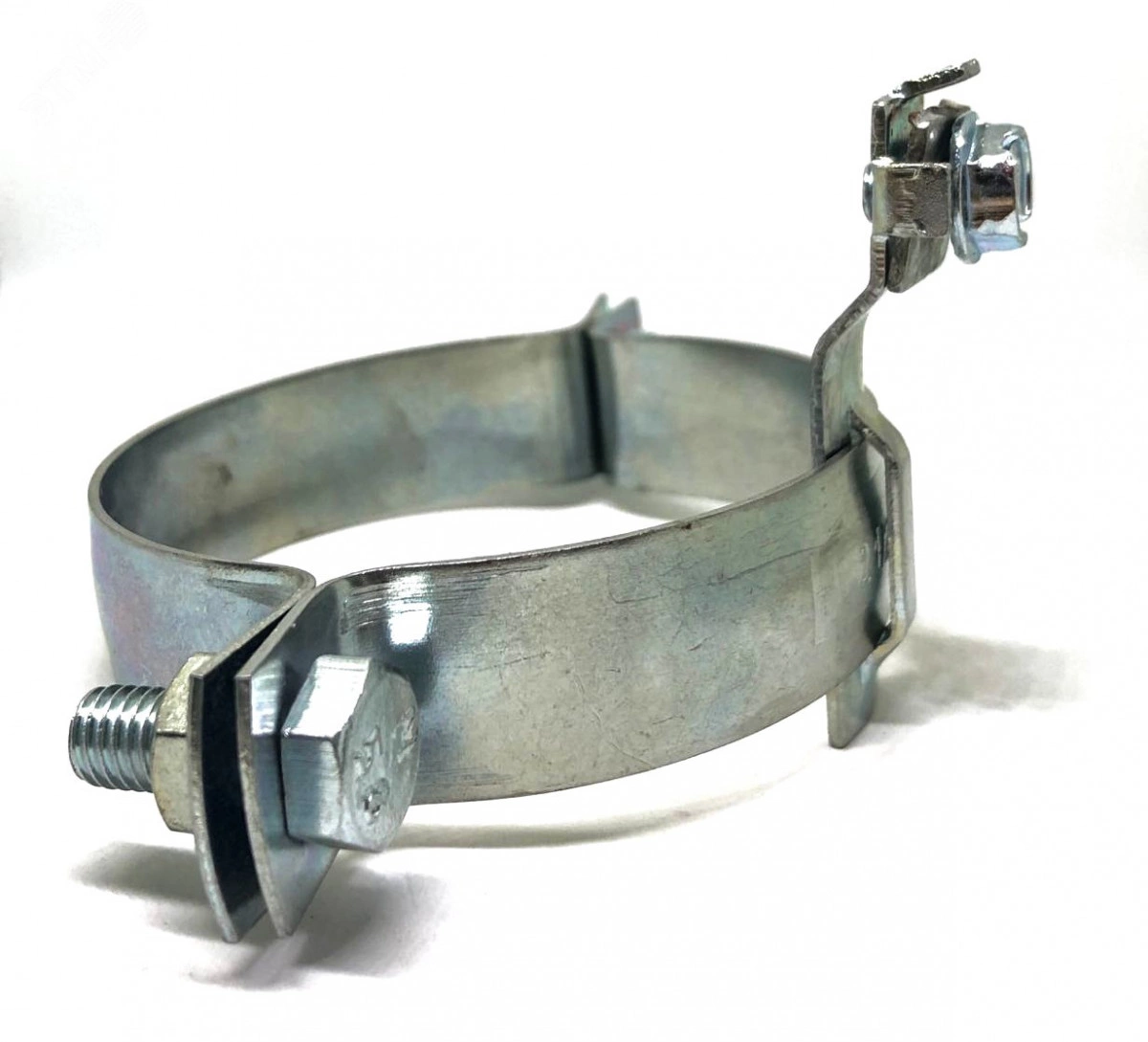 Трубный хомут со специальной клеммой используется для подключения заземляющего проводника к трубе.