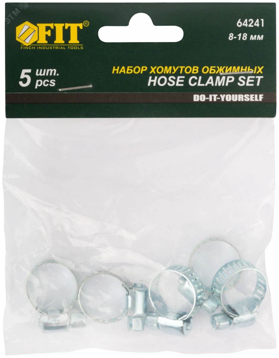 Хомуты оцинкованные сталь набор 5 шт. 8 - 18 мм.
