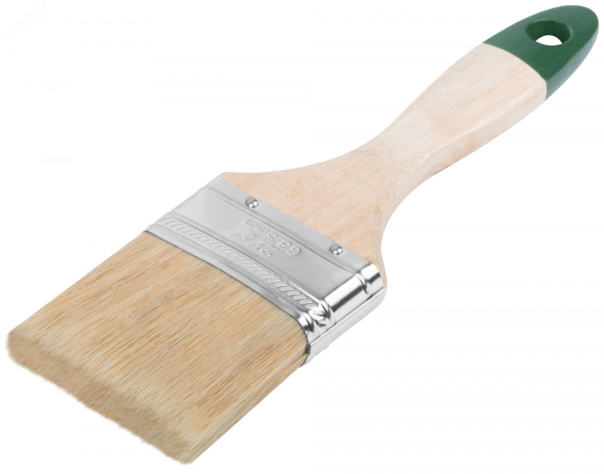 Кисть флейцевая ''Хард'', натуральная светлая щетина, деревянная ручка 2.5'' (63 мм)