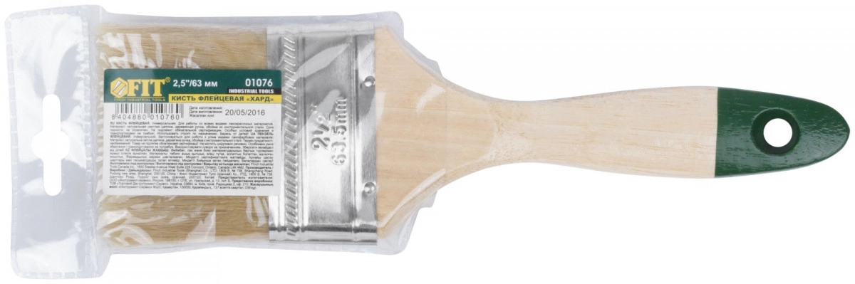 Кисть флейцевая FIT IT серии ''Хард'' с натуральной светлой щетиной предназначена для работ со всеми видами лакокрасочных материалов. Может использоваться для отводки линий в труднодоступных местах, покраски дверных полотен и оконных переплетов. Щетина отличается высокой впитываемостью и наполняемостью краской. Деревянная ручка эргономичной формы удобно лежит в руке. Отверстие в рукоятке дает возможность хранить и сушить кисть в подвешенном положении.