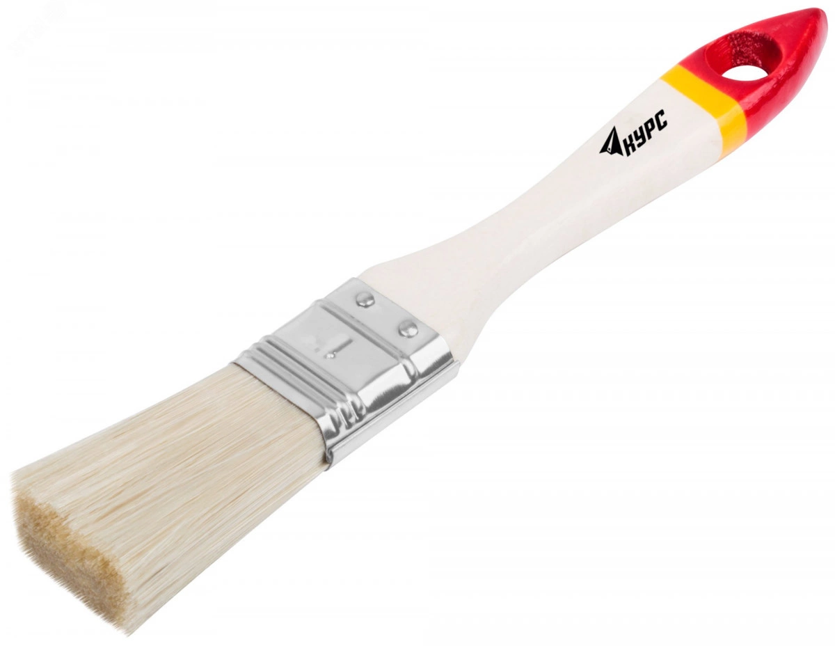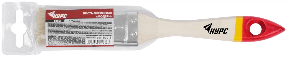 Кисть флейцевая Модерн КУРС предназначена для работ с водно-дисперсионными и акриловыми красками и лаками. Кисть удерживает большое количество краски за счет длинной искусственной щетины. Металлический обод надежно фиксирует щетину на рукоятке. Отверстие в рукоятке дает возможность хранить и сушить кисть в подвешенном положении.