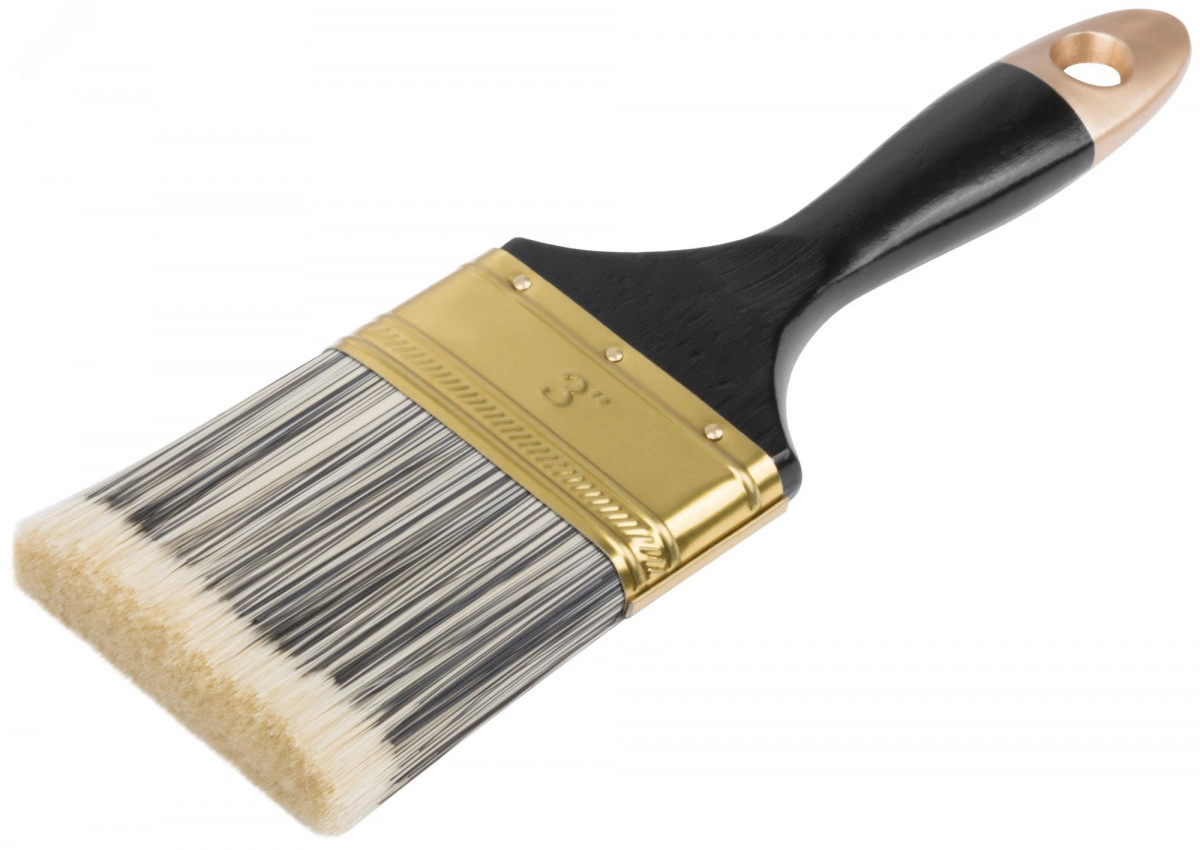 Кисть флейцевая ''Стайл'', искусственная черно-белая щетина, деревянная ручка 3'' (75 мм)