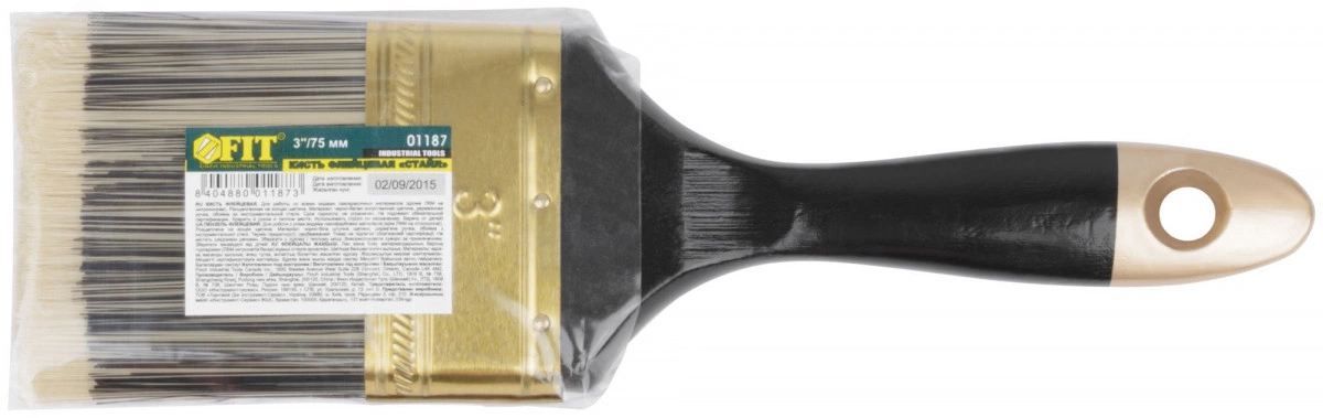 Кисть флейцевая FIT IT серии ''Стайл'' предназначена для работы с водно-дисперсионными красками и лаками (кроме нитролаков и нитрокрасок). Кисть удерживает большое количество краски за счет длинной искусственной щетины. Металлический обод надежно фиксирует щетину на рукоятке. Отверстие в рукоятке дает возможность хранить и сушить кисть в подвешенном положении.