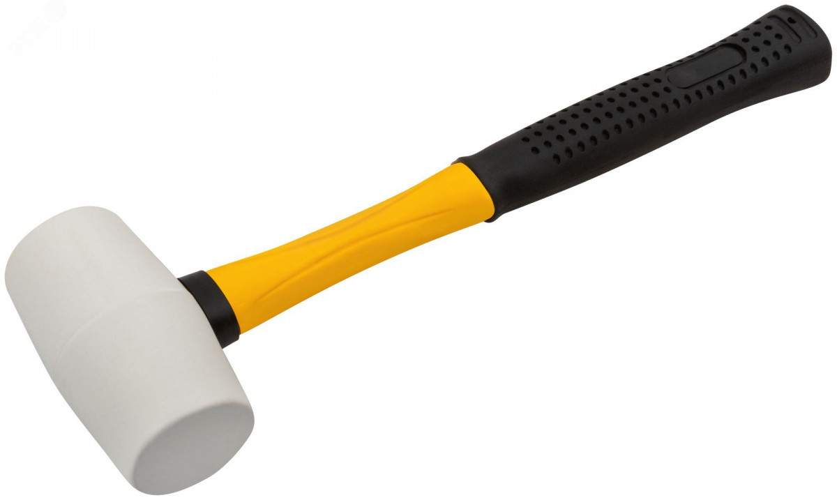 Боек из белой резины обладает высокими виброгасящими свойствами и не оставляет следов на поверхности|Эргономичная рукоятка обеспечивает надежный хват|Резиновая вставка на рукоятке предотвращает проскальзывание в руке