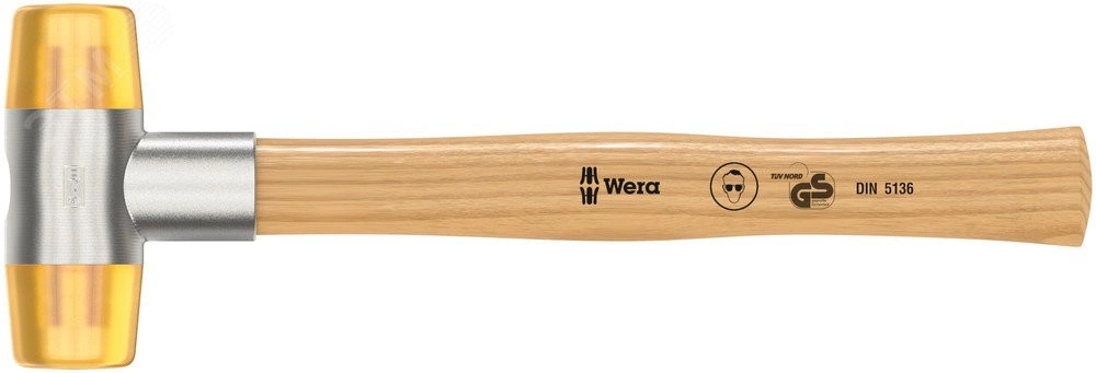 Молоток с мягкими бойками Wera - конструкция с клином в форме двустороннего конуса для надёжного неразъёмного соединения головки и ручки молотка. Головка молотка из пластика Cellidor. Ручка из высококачественного ясеня. Для сильных ударов. Разные варианты применения за счёт переоснащения головки молотка. Для работы с большой нагрузкой.