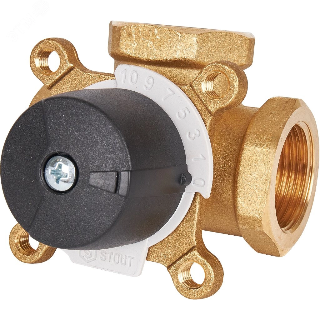 Клапан смесительный 3-х ходовой моторный поворотный STOUT предназначен для регулирования температуры теплоносителя, горячей воды или воздуха помещения в системах отопления и горячего водоснабжения зданий. Он может управляться вручную или приводится в действие электрическими приводами STOUT