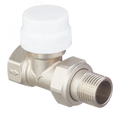 Клапан для радиаторов термостатический прямой - отвечает за ручное или автоматическое регулирование расхода теплоносителя в отопительном приборе. Во втором случае комплектуется термостатической головкой или сервоприводом, управляемым комнатным термостатом или контроллером. Резьба - наружная, цилиндрическая трубная по ГОСТу 6357-81.