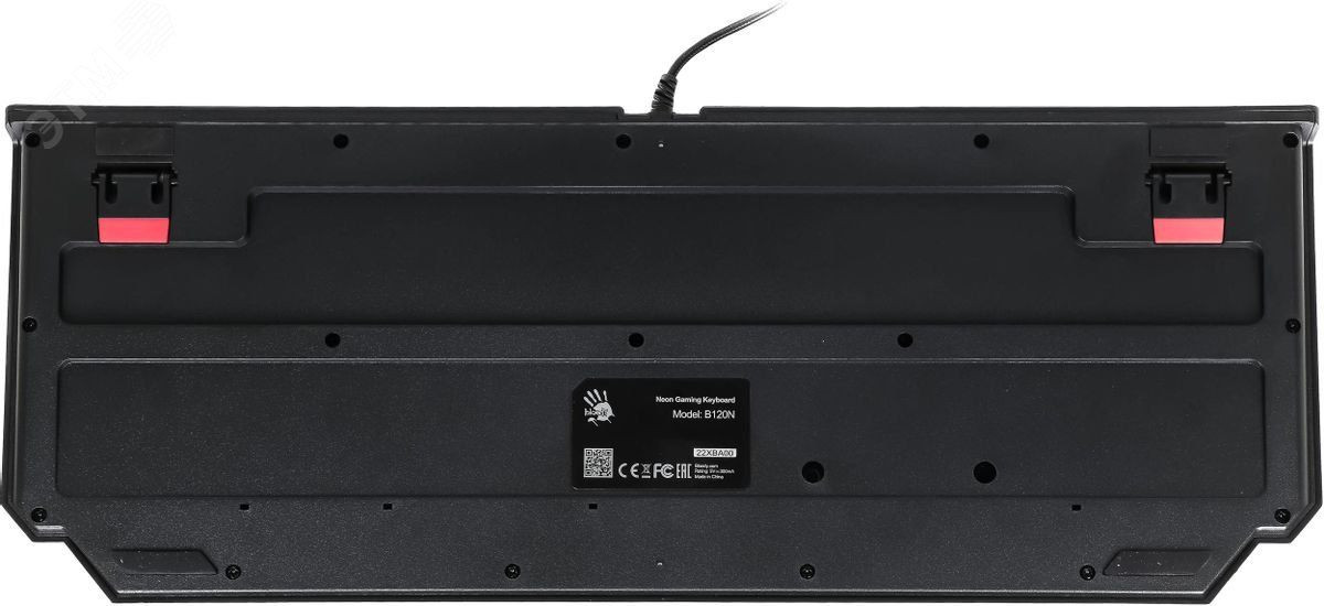 Клавиатура A4Tech Bloody B120N черного цвета подключается к компьютеру посредством длинного (1.8 м) кабеля в тканевой оплетке через интерфейс USB. Ее функциональность обеспечит высокую скорость и точность выполняемых в игре действий. Мембранный механизм предполагает легкое и практически бесшумное нажатие на клавиши. Пластиковый корпус клавиатуры имеет водоотталкивающее покрытие, благодаря которому ей не страшна случайно пролитая вода. Эргономичная форма корпуса создает дополнительный комфорт в процессе игры. Клавиши на клавиатуре A4Tech Bloody B120N имеют RGB-подсветку, что придаст любой игре больше динамики и азарта. Кроме того, все буквы и символы на клавишах будут отчетливо видны даже в темноте. Также есть 4 съемные клавиши WASD из силикона, используемые для перемещения в играх. За счет выдвижных ножек клавиатуру можно поставить под удобным для игрока углом.