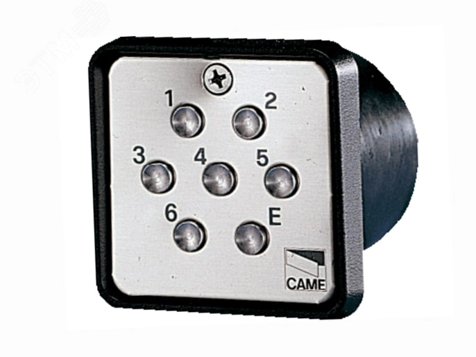 Описание CAME s6000 на 7 кнопок CAME S6000 - встраиваемая кодонаборная клавиатура из оцинкованной и окрашенной стали с фронтальной подсветкой, 7 кнопок.