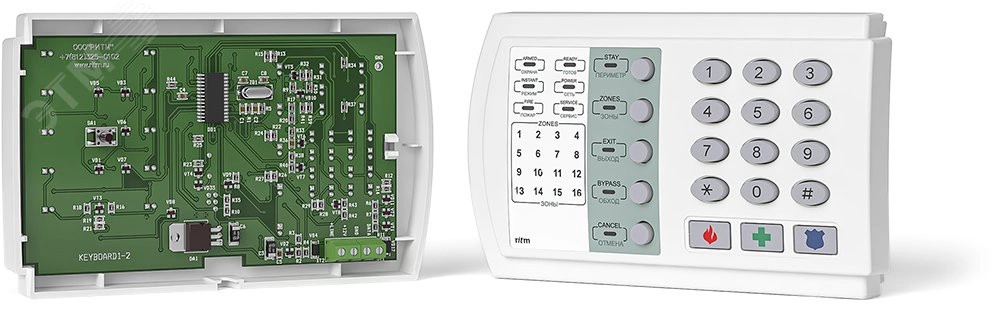 Кнопочная клавиатура со светодиодной индикацией для управления контрольной панелью Контакт GSM-16 и серией контрольных панелей Контакт GSM 5-2, 5А v.2. Управляет постановкой и снятием разделов, изменяет коды пользователей, отображает состояние зон, разделов и состояние системы. Отправляет сигналы экстренных тревог.