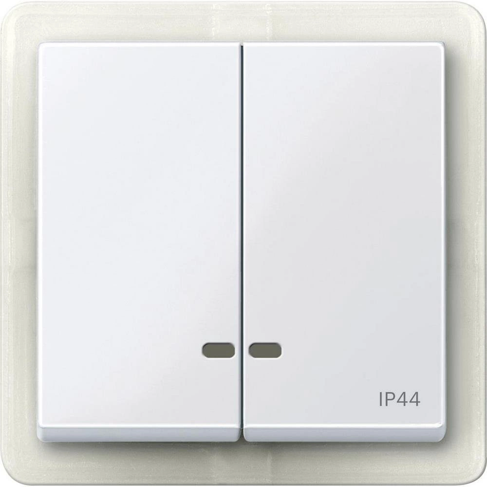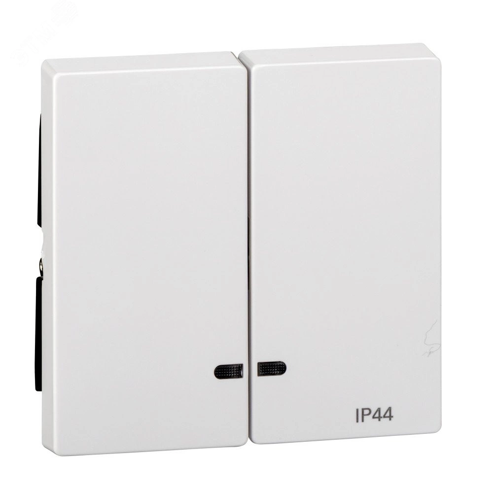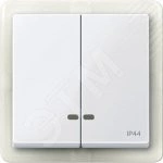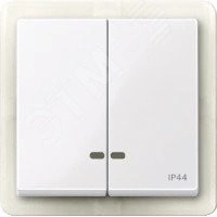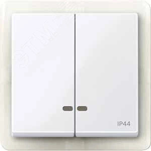 Две клавиши с окошком для светоиндикатора IP44 . Торговая марка изделия - Schneider Electric - Серия продукта - Merten System M, наименование - M-Elegance, M-Plan, System M, M-Plan glass, M-Smart, M-Star, M-Arc. Тип устройства или его аксессуаров - клавиша с индикатором, комплектация изделия - с защищенным выключателем питания, код цвета - RAL 9016.