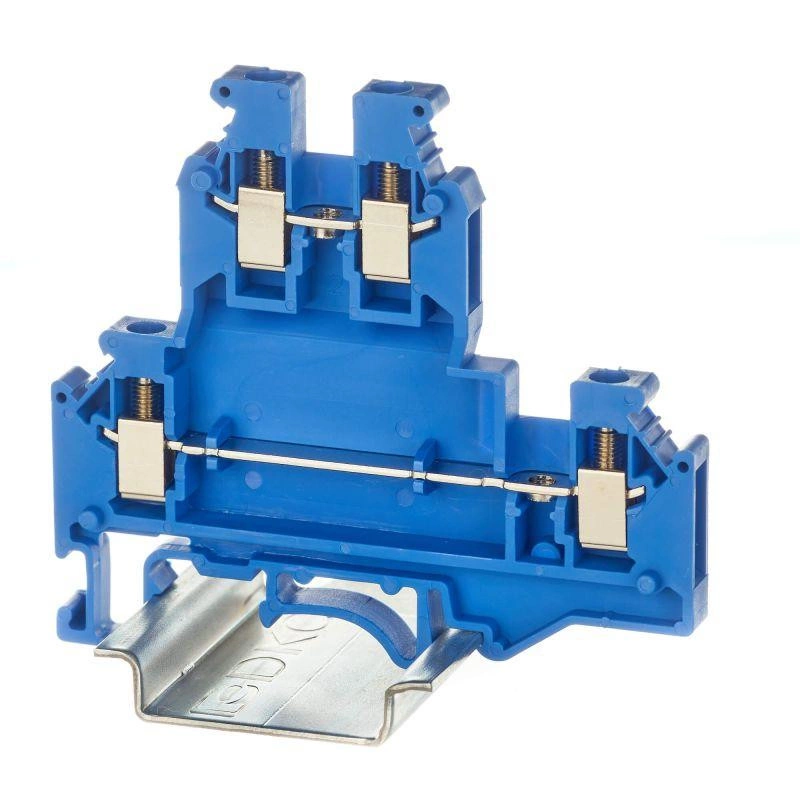 Клемма двухуровневая винтовой зажим 4 точки подключения 2.5кв.мм син. DKC KRUKB-3-BU