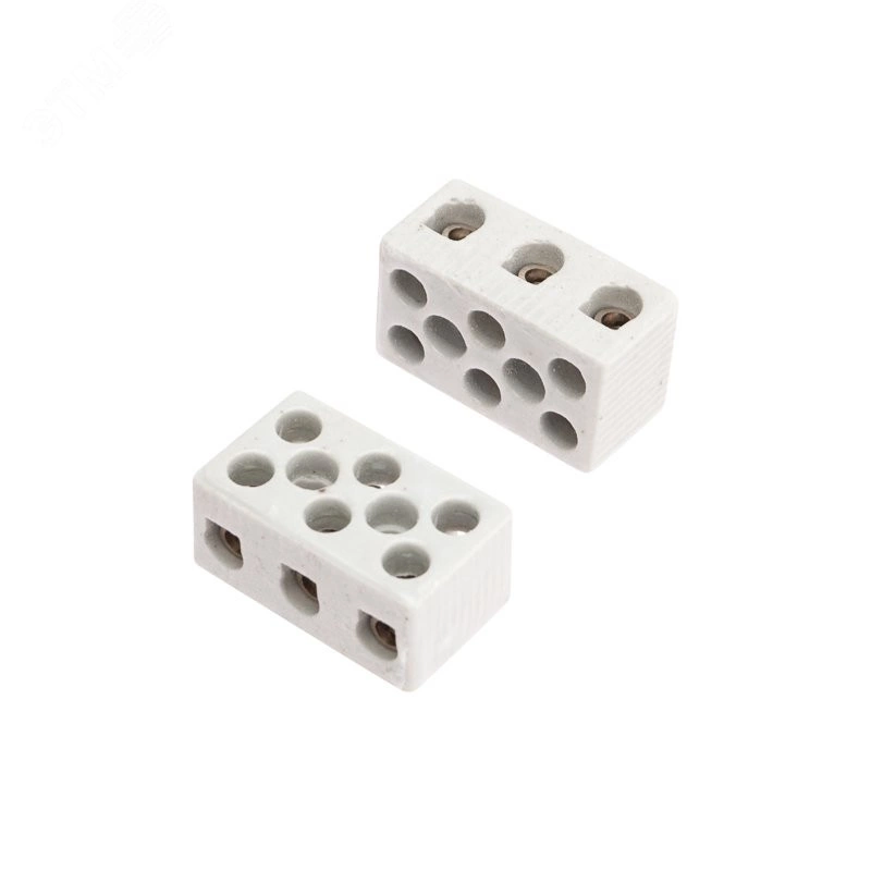 Клемма керамическая винтовая КВ 10 кв мм 3 пары контактов с крепежным отверстием