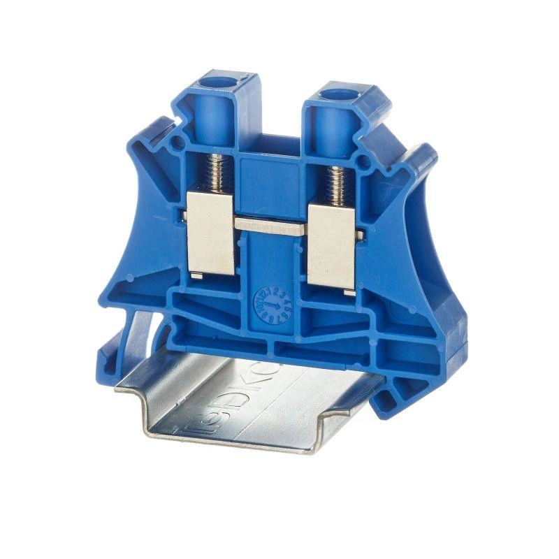 Полное описание: Клемма проходная винтовой зажим 2 точки подключения 10кв.мм син. DKC TUR-10-BU