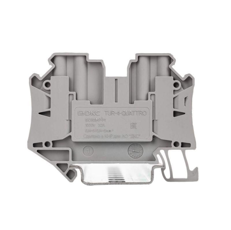 Полное описание: Клемма проходная винтовой зажим 4 точки подключен. 4 кв.мм сер. (уп.60шт) DKC TUR-4-QUATTRO