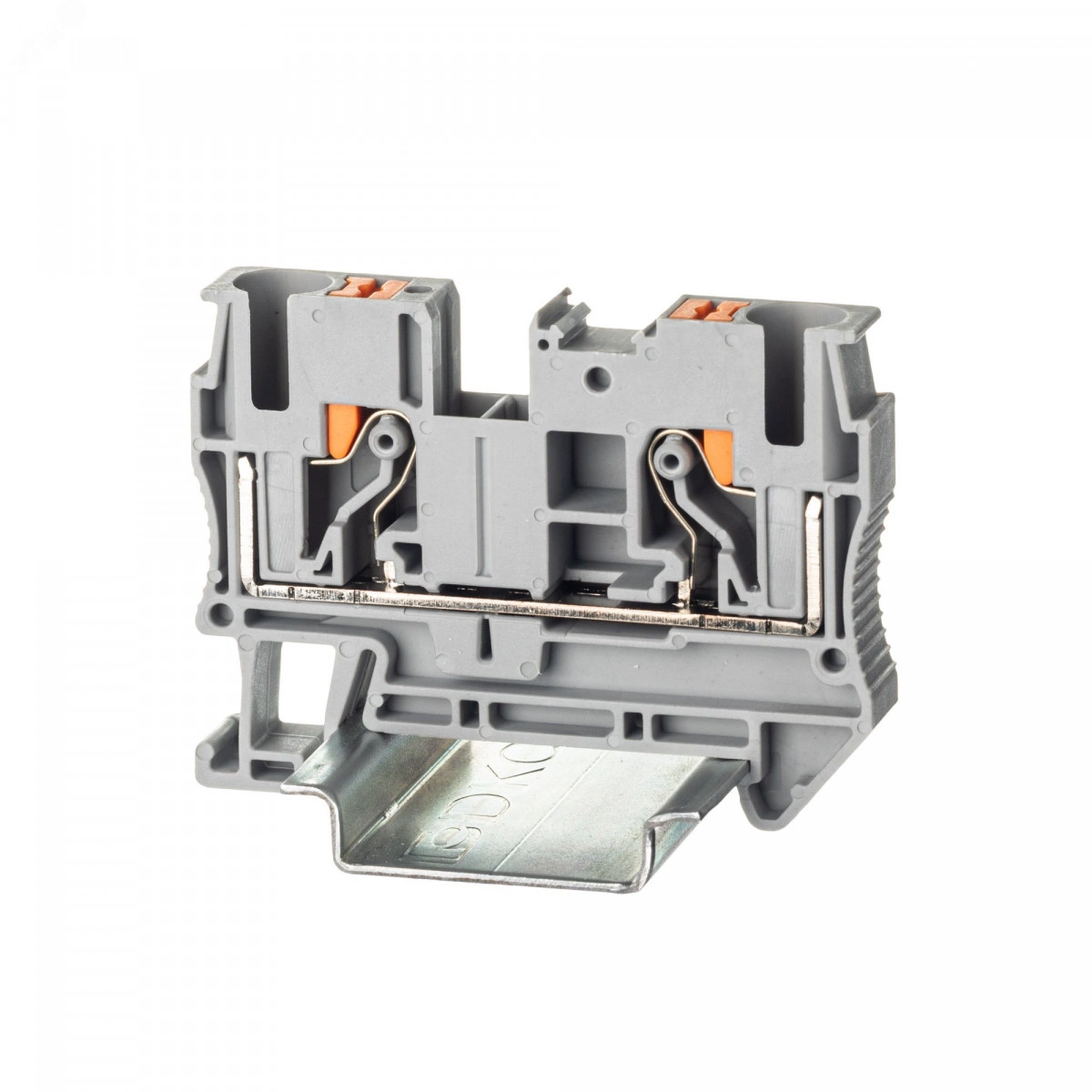 Клемма проходная, зажим push-in, 2 точки подключения, 6 кв.мм, серая