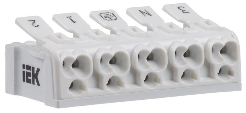 Полное описание: Клемма пружинная соединительная КСП5-3L+N+PE IEK UKZ-B06-5P-F0-E0-10