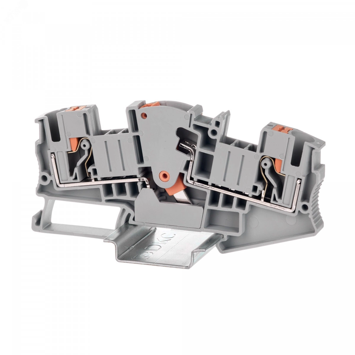 Клемма с размыкателем, зажим push-in, 2 точки подключения, 6 кв.мм, серая