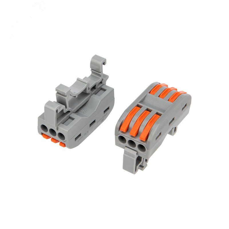 Клемма СМК 222-423D проходная 3-полюсная, с крепл на DIN-рейку (0,08-4 кв мм), REXANT