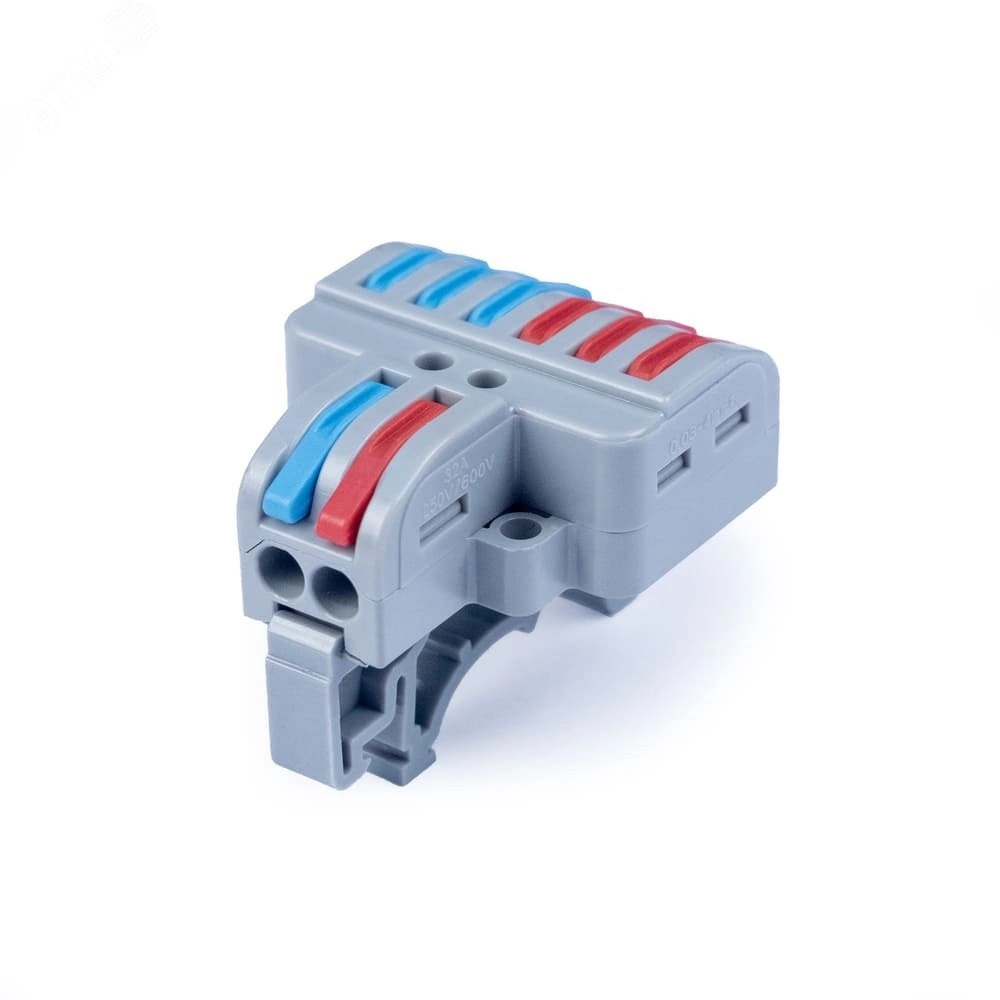 Универсальная проходная изолированная клемма с возможностью монтажа на DIN-рейку предназначена для многоразового подключения любых типов медных проводников – одножильных и многожильных. Зажим проводов в клемме осуществляется при помощи рычагов. Специальное технологическое отверстие на корпусе клеммы предназначено для проверки соединения тестером-пробником или щупом мультиметра. Элемент фиксации к DIN-рейке съемный. На корпусе есть боковые выступы для возможности крепления к любым поверхностям. Клеммы обеспечивают простой и быстрый монтаж.