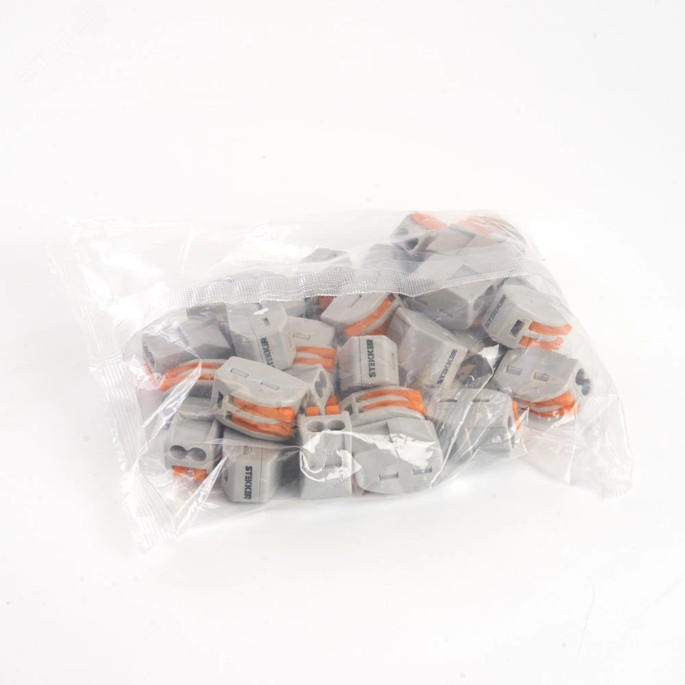Клемма пружинная универсальная STEKKER LD222-612, 2-проводная 0,5-6 мм2, 450В, 41А, без пасты, материал изделия пластик, латунь. Тип провода одножильный/многожильный, материал провода медь, температура окружающей среды -20...+40°C. Преимущества: - токоведущая часть из латуни с высоким содержанием меди, - надежный пружинный механизм фиксации провода, - подходит для одножильных и многожильных проводов, - сечение до 6 мм2. Сфера применения: -строительство, - щитовое оборудование, - производство с