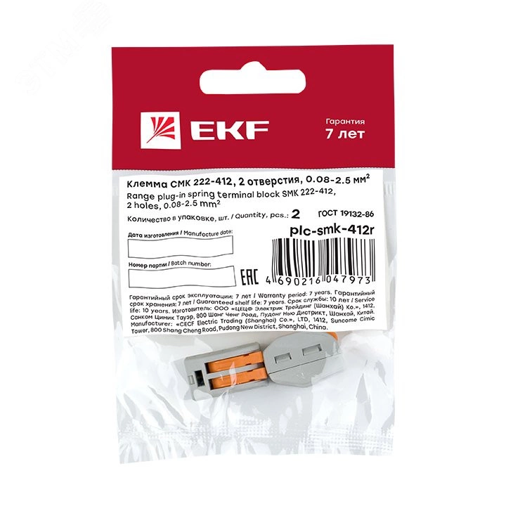 Клемма строительно-монтажная СМК модель 412 рычаг 2 отверстия 0.08-2.5мм2(2шт) PROxima