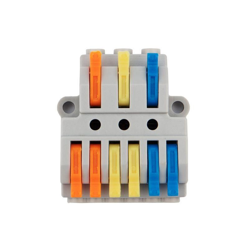 Клемма строительно-монтажная СМК проходная разветвительная 3х2 3п с монтажной площадкой 1 ввод 2 вывода на полюс (уп.5шт) Rexant 07-5233-05