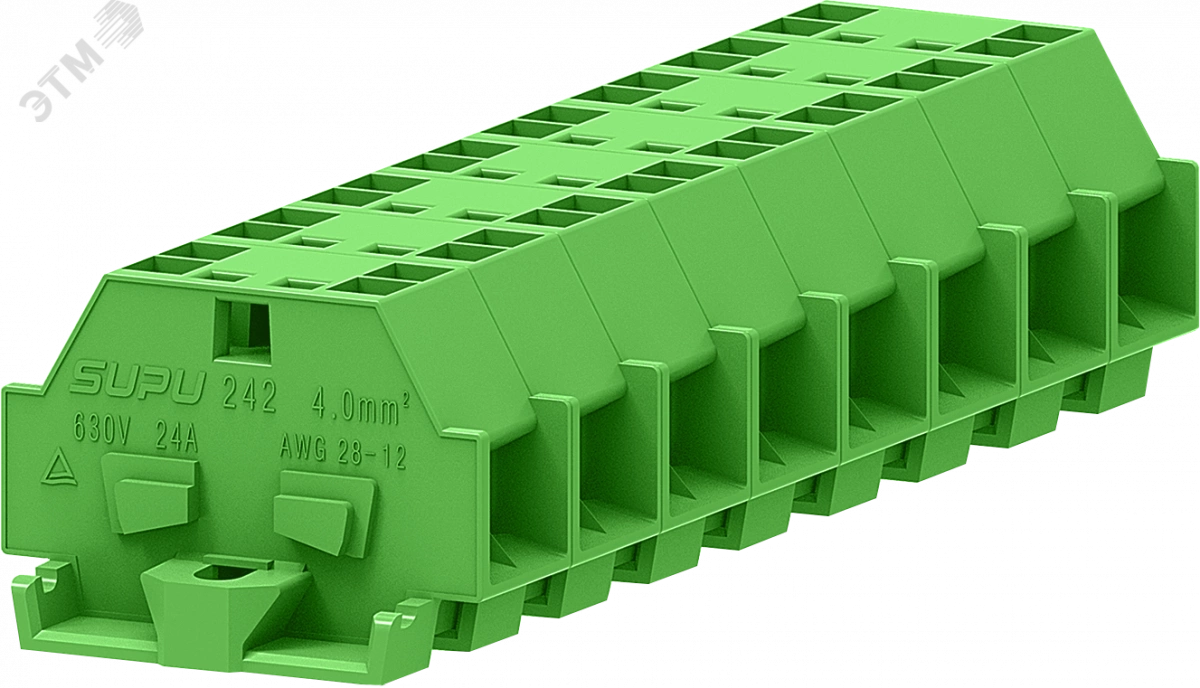 Клемма TB 2-2 с бок. подключ. с фиксирующим фланцем, зеленая