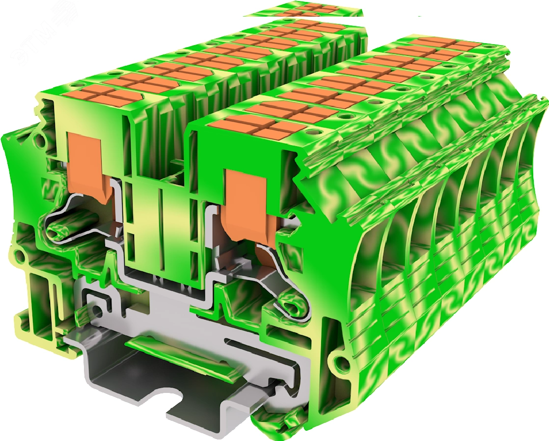 Клемма TP 1-1 проходная с боковой вводом провода с заземление .Push-in, сечение 6 мм. кв., желто-зеленая