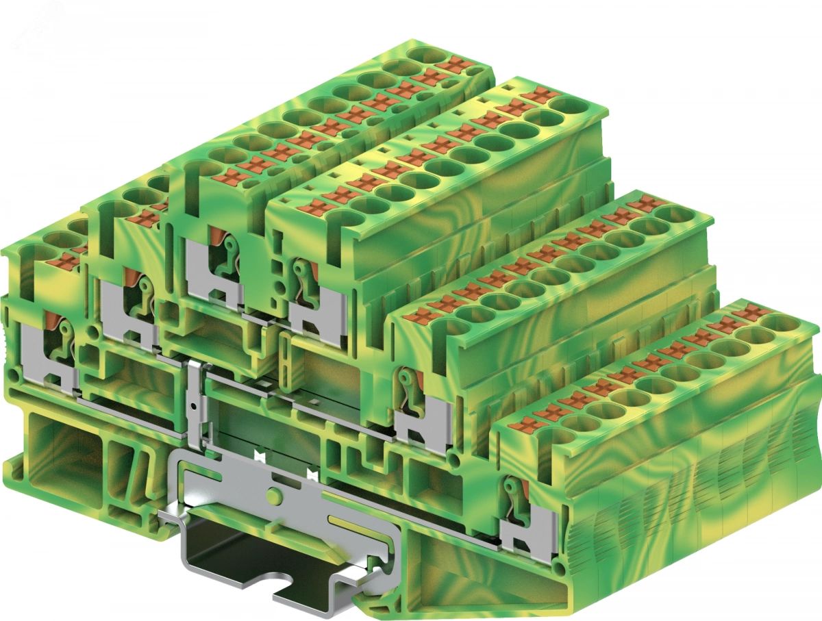 Клемма TP земля, 3-уровневая с уравниванием потенциалов, Push-in, сечение 2,5 мм. кв., желто-зеленая
