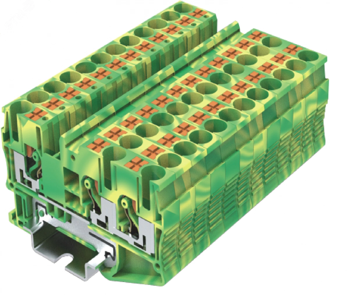 Клемма ТР 1-2, земля, сечение 6 мм. кв., желто-зеленая