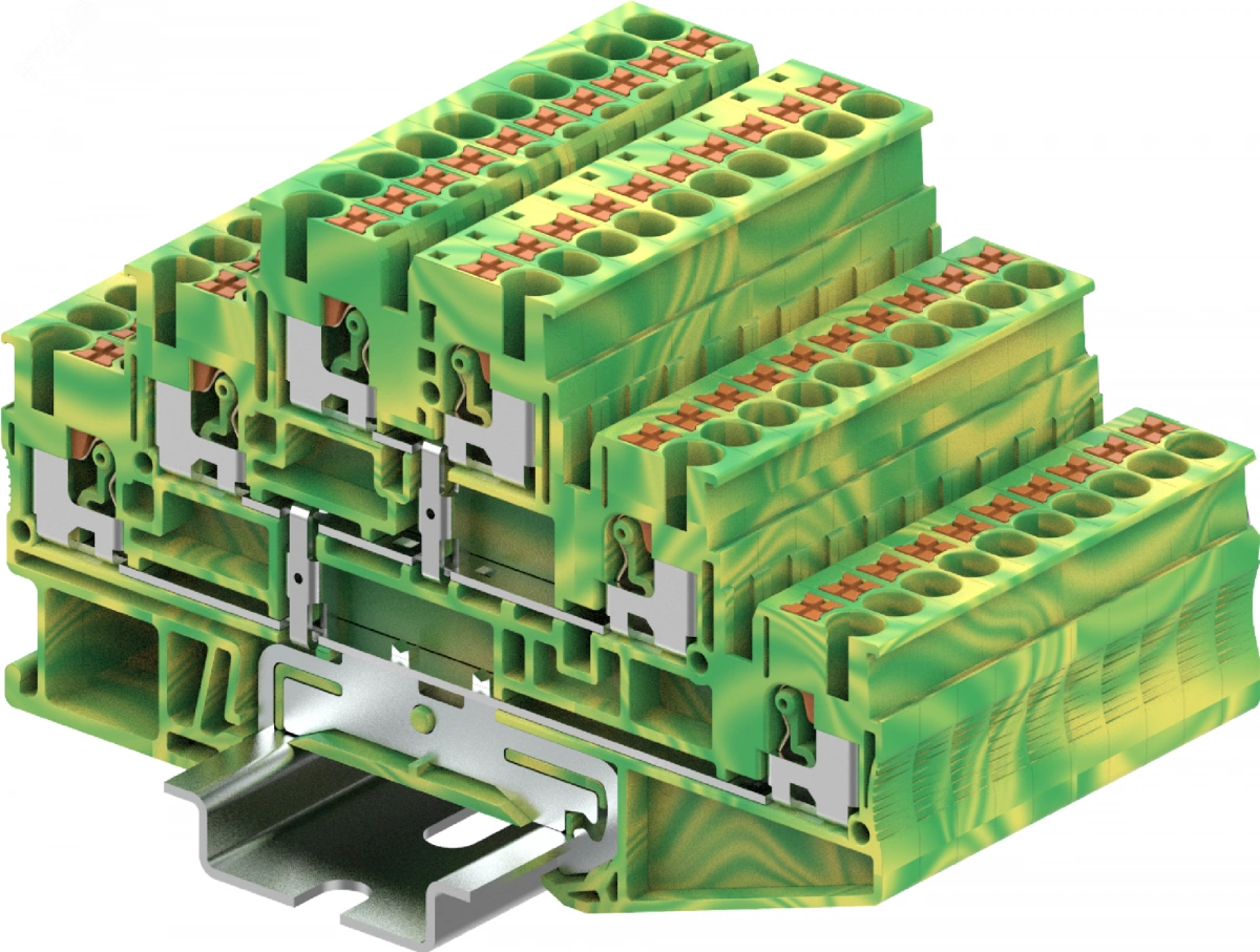 Клемма ТР, 3-уровневая, земля, сечение 2,5 мм. кв., желто-зеленая