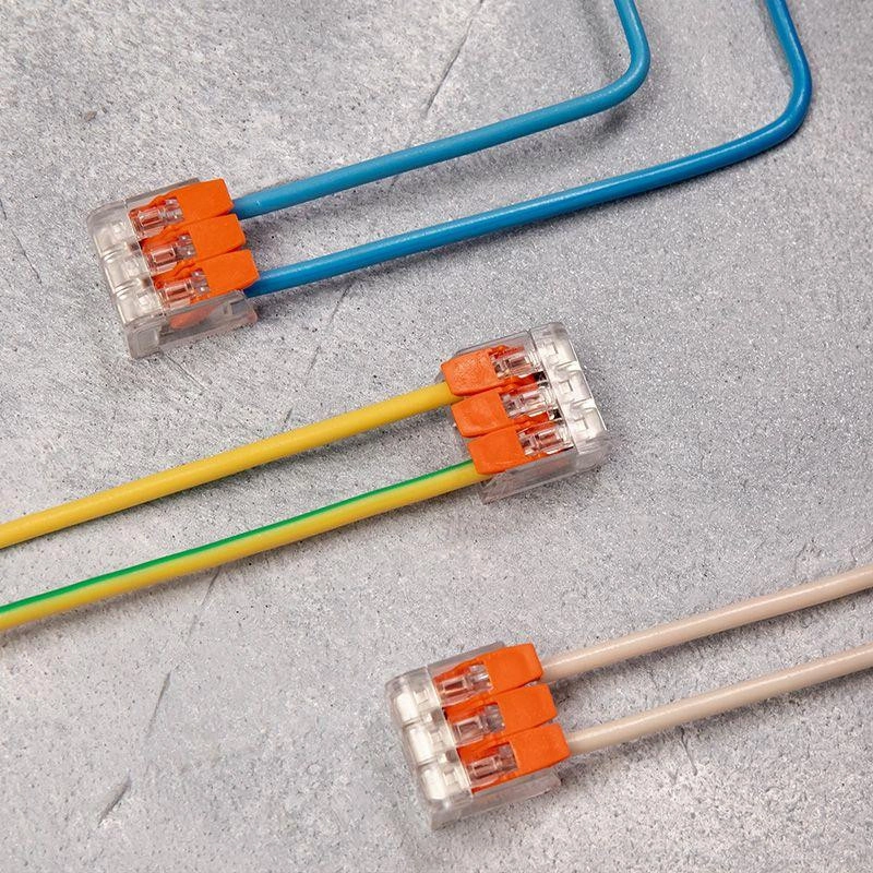 Многоразовая 3-проводная клемма REхANT это один из самых быстрых, надежных и удобных способов монтажа проводников при небольшой потребности в пространстве в точке коммутации, в условиях нехватки и ограничения пространства. Конструкция на 30 % компактнее привычных рычажковых клемм, прозрачный корпус позволяет контролировать контакт проводников с контактными пластинами, правильность зачистки проводников. Широкие плоские рычаги с меньшим прижимным усилием более удобны и надежны в работе, наличие двух гнезд для тестовых щупов с обеих сторон клеммы облегчает доступ и контроль соединения и питания.