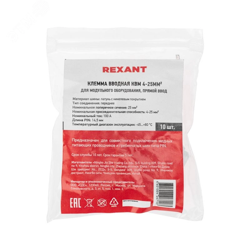 Клемма вводная КВМ 4-25мм для модульного оборудования, прямой ввод REXANT