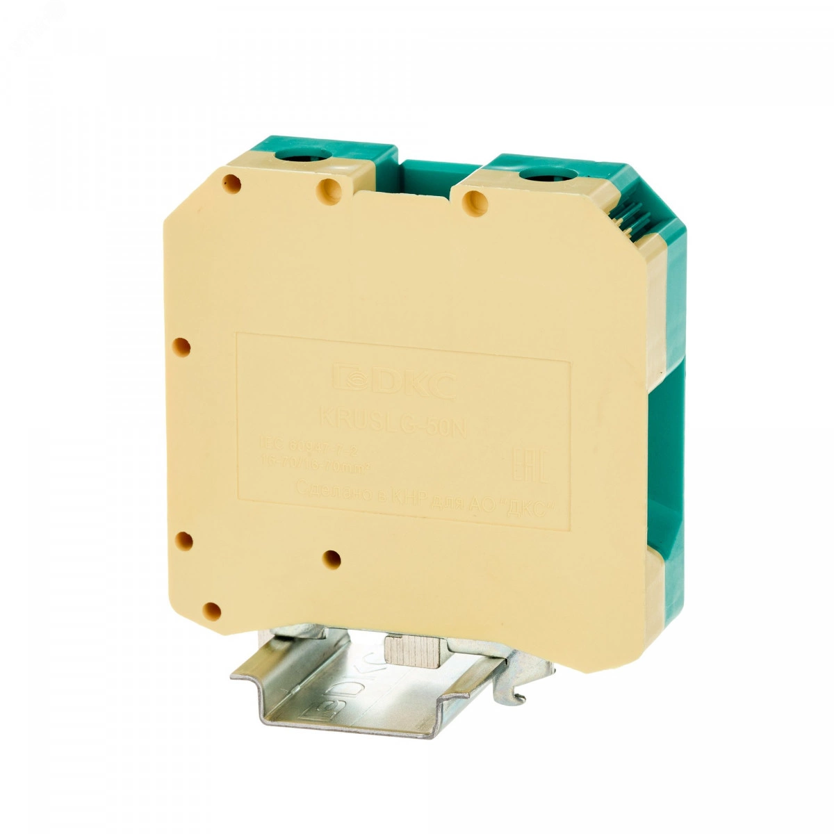 Клемма для заземления с винтовым зажимом предназначена для соединения двух проводников. Монтаж на DIN-рейку OMEGA. Температура эксплуатации от -40 до +105C. Корпус выполнен из ПА 6.6 с классом горючести V0 UL-94. Имеет электрический контакт с DIN-рейкой. Желто-зеленый цвет, 2 точки подключения, 50 мм2. 1 канал винтовых перемычек. Габариты (ВxШxГ) 83,5x70,5x20 мм.