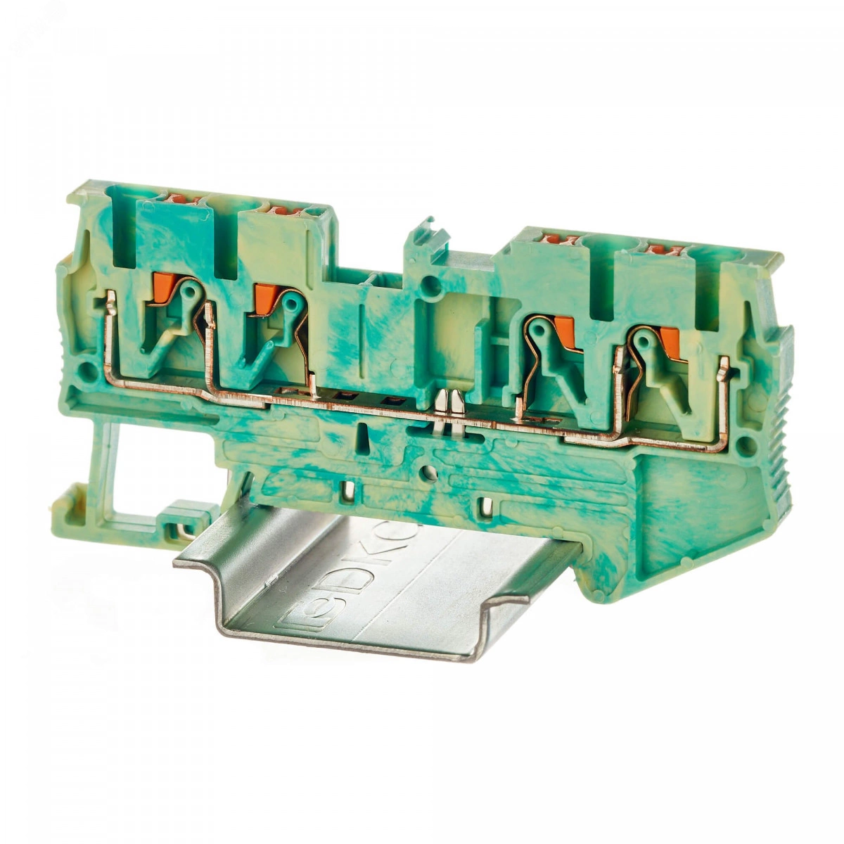 Клемма для заземления с Push-in зажимом предназначена для соединения четырех проводников, а за счет кнопки-толкателя обеспечивается защита от ошибок при монтаже и случайного прикосновения. Клемма имеет электрический контакт с DIN-рейкой. Монтаж на DIN рейку OMEGA. Температура эксплуатации от -40 до +105 оС. Корпус выполнен из ПА 6.6 с классом горючести V0 UL-94. Желто-зеленый цвет, 4 точки подключения, 2.5 мм2. 2 канала вставных перемычек. Габариты (ВxШxГ) 37,2x73x5,2 мм.