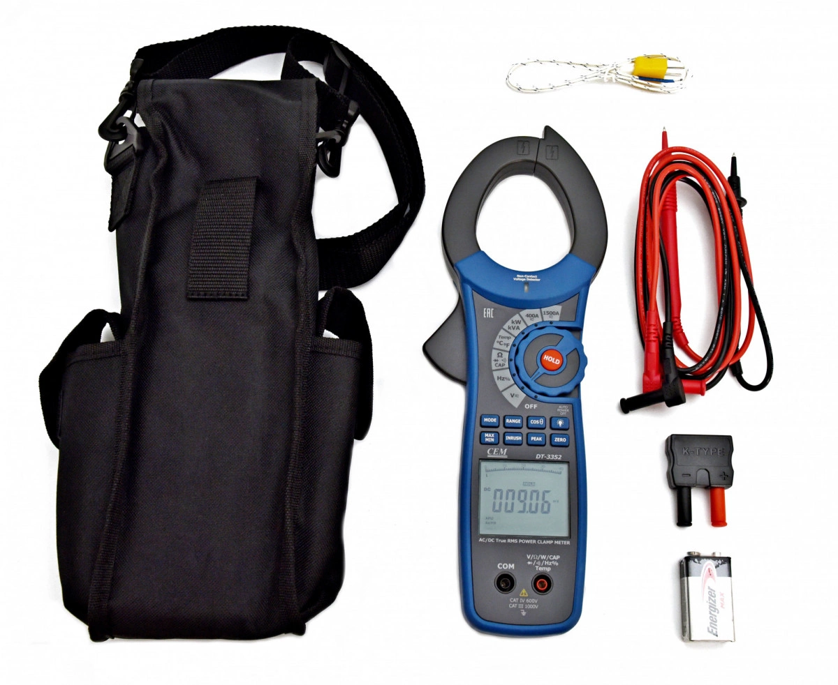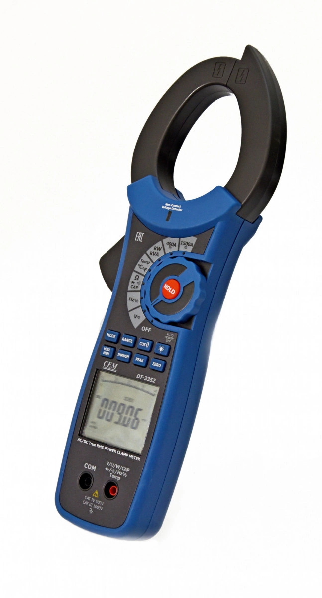 Прорезиненный ударопрочный корпус обеспечивает защиту прибора от различных механических повреждений. Ударопрочная защищенная конструкция позволяет прибору работать в жестких условиях эксплуатации. Эргономичный и современный дизайн имеет подставку-упор для удобного вертикального расположения. Предназначены для использования как внутри помещений, так и снаружи. Подсветка дисплея LCD. Автоматическое отключение питания. Защита от перегрузок EN 610101-1 CATV 600V, CATIII 1000V. Двойной пластиковый корпус. Измеряемый ток - переменный/постоянный. Измерение среднеквадратичных значений True RMS. Измерение мощности. Графическая шкала. Диодный тест, прозвонка цепей. Удержание показаний DATA HOLD. Определение максимальных и минимальных значений MAX/MIN. Захват пиковых значений PEAK. Пусковой ток. Установка нуля ZERO. Индикация разряда батареи. Раскрытие охвата 52 мм. Бесконтактный детектор напряжения.