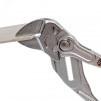 Клещи переставные - гаечный ключ с кнопочной фиксацией. Заменяют полный набор гаечных ключей, также применяются для захвата и фиксации деталей. Материал рукояток - пластизоль. Точная многопозиционная регулировка механизма захвата для оптимальной установки по размеру детали без зазоров. Регулировка раскрытия инструмента пружинной кнопкой. Конструкция шарнира исключает случайную перестановку. Бесступенчатая установка размера ключа благодаря параллельному ходу губок. Гладкие губки позволяют работать с хромированными деталями без риска их повреждения. Безлюфтовое прилегание поверхностей. Минимальное усилие при работе благодаря специальной форме губок и рукояток. Материал корпуса - кованая хром-ванадиевая сталь. Обработка поверхности - фосфатирование.