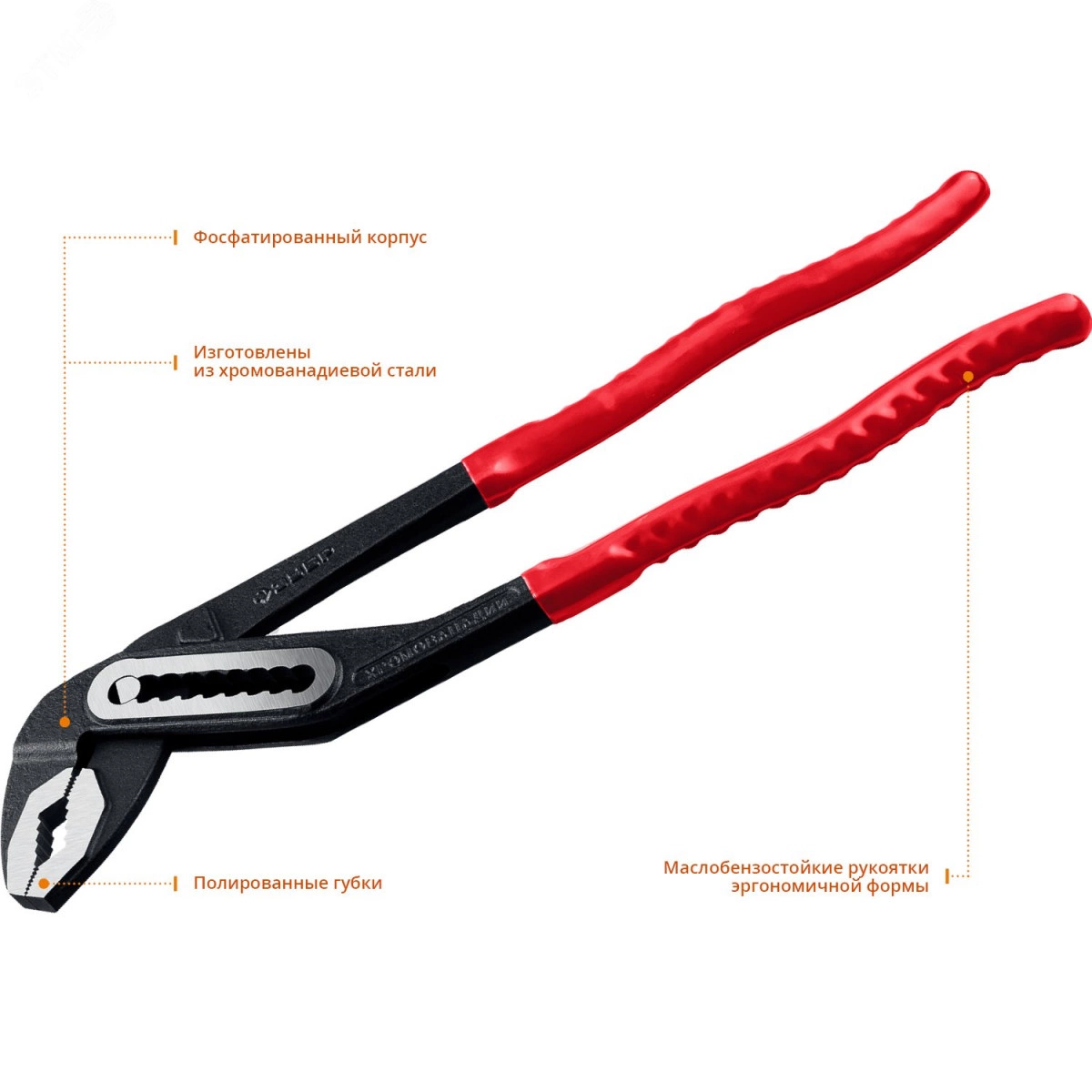 Полное описание: Клещи переставные ''Мастер'', Сr-V, высокомощный коробчатый шарнир, 400мм