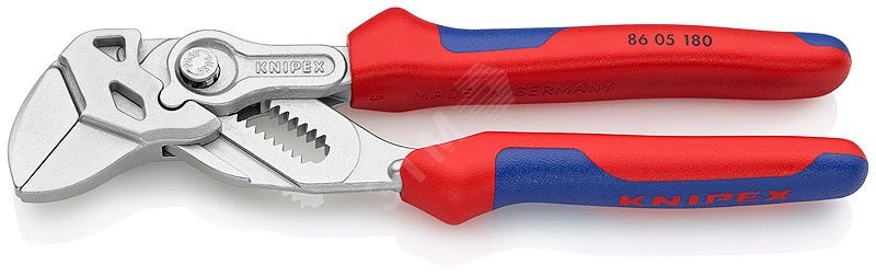 Клещи переставныеавные - гаечный ключ 40 мм (1 1/2) L-180 мм Cr-V хромированные 2-компонентные рукоятки KN-8605180