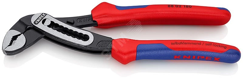 Переставной ключ KNIPEX Alligator KN-8802180SB отличается высокой износоустойчивостью благодаря используемой при производстве закаленной хромовадиевой стали. Надежный захват детали обеспечивается прочными зубцами на рабочей части инструмента, что предотвращает скольжение по детали