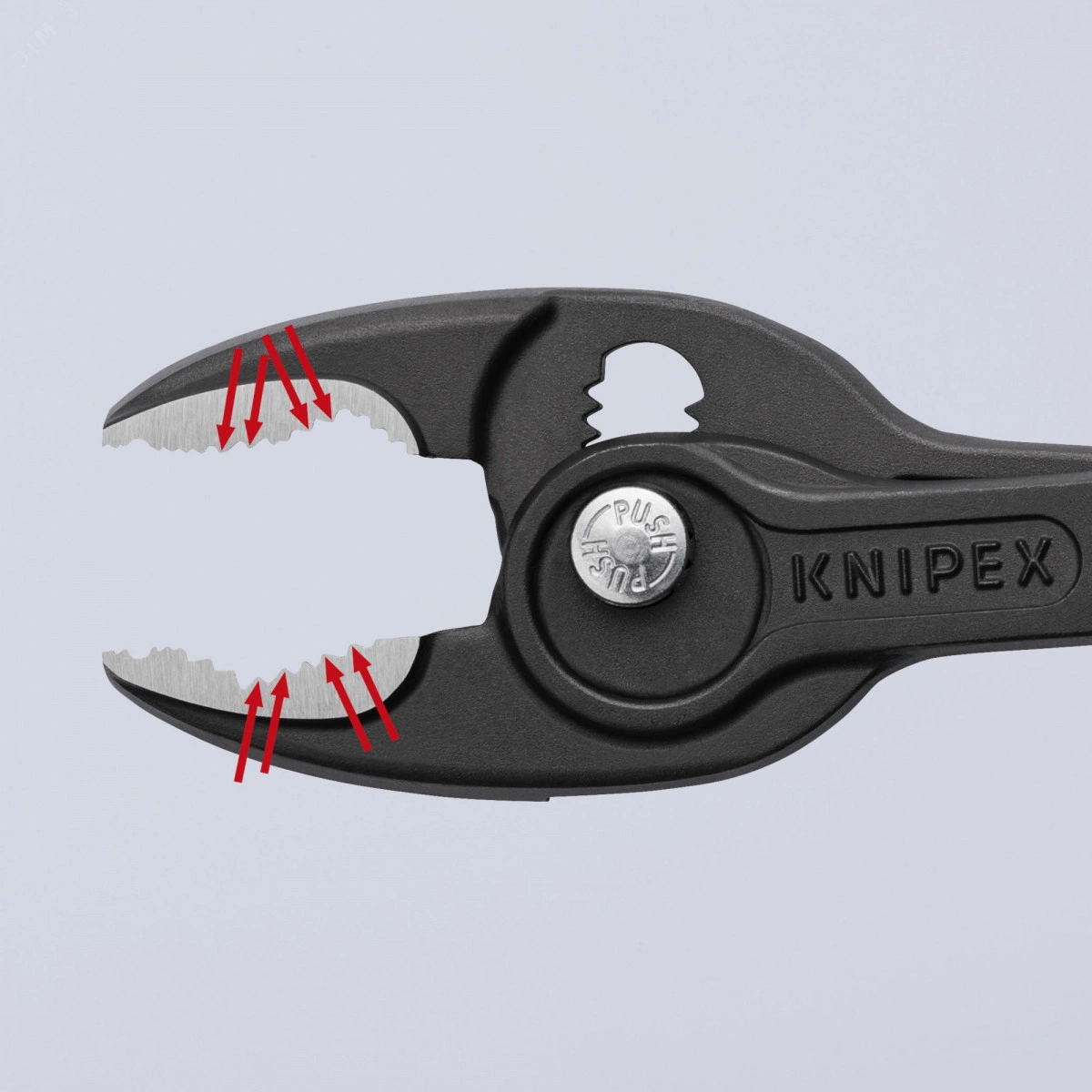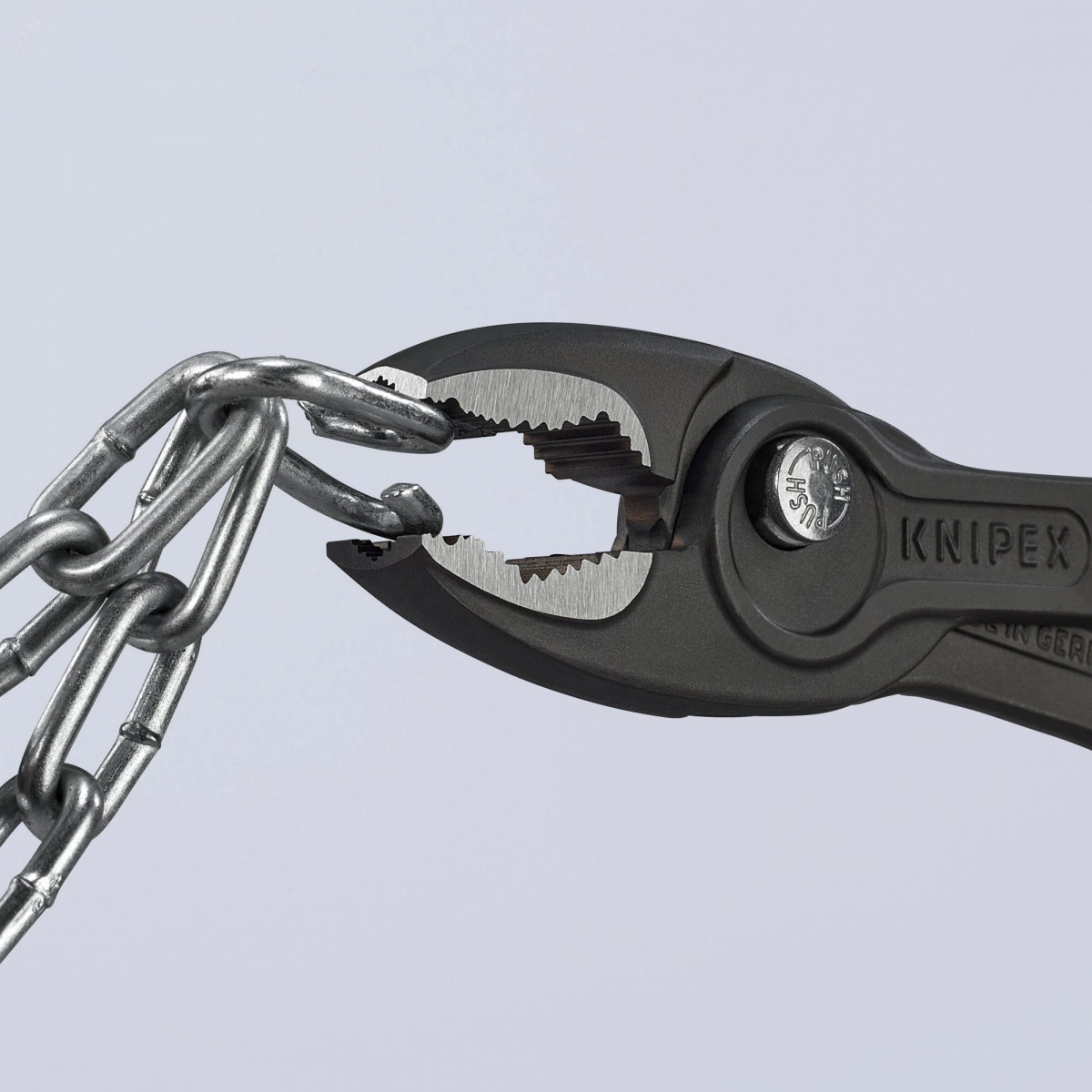 TwinGrip Уникальная комбинация - функция переднего и бокового захвата, коробчатый шарнир, Кнопочная. Очень тонкие клещи позволяют работать даже в ограниченном монтажном пространстве с узкой зоной разворота для достижения быстрых результатов. Передняя сторона губок с мощным захватом, прочными зубьями и высоким коэффициентом сцепления на верхушке губок. Широкий диапазон переднего и бокового захвата 4 - 22 мм. Надёжный передний захват деталей с помощью трехточечной системы. Захват, затяжка и откручивание винтов с изношенными головками и резьбами. Скользящий шарнир с пятиступенчатой регулировкой и с кнопочной регулировкой для точной регулировки емкости захвата. Ограничитель защемления снижает риск защемления пальцев. Долговечность и устойчивость благодаря прочному коробочному шарниру